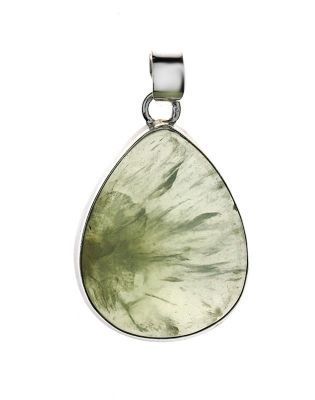 Urzekający wisiorek wykonany w całości z gładkiego srebra najwyższej próby 0,925 z naturalnym prehnitem  w kolorze zielonym. Wymiary: Grubość wyrobu: 0.9...