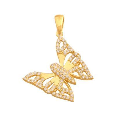 Śliczny wisiorekażurowy motyl wykonany w całości ze złota o próbie 0,585 / 14 karatów z cyrkoniami  w kolorze białym. Wymiary:...