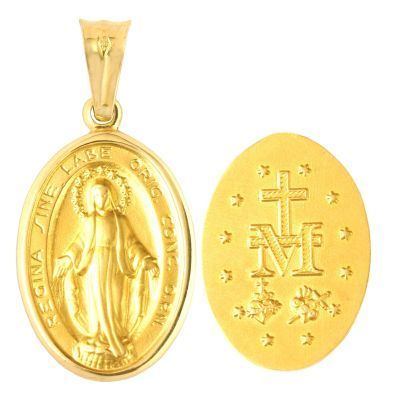 Tradycyjny złoty Cudowny Medalik, dwustronny. Medalikwykonany w całości ze złota o próbie 0,585 / 14 karatów. Wymiary: Szerokość wyrobu: 1.4 cmDługość bez...