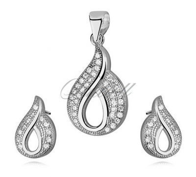 Miły dla oka komplecik wykonany ze srebra próby 925, rodowanego dla lepszej prezentacji. W skład wchodzi gustowna zawieszka i para kolczyków na sztyfcie. Kształt przypominający łezkę można uznać za uniwersalny, ale delikatne zakręcenie na szczycie nadaje mu nutki indywidualności....