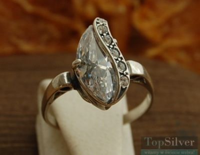 Stylowy, srebrny pierścionek, który swoją stylistyką nawiązują do biżuterii z początku ubiegłego wieku produkowanej w Wiedniu. Motyw zdobniczy symbolicznie przedstawia owoc, który został przeslonięty srebrna gałązką w której umieszczono 6drobnych...