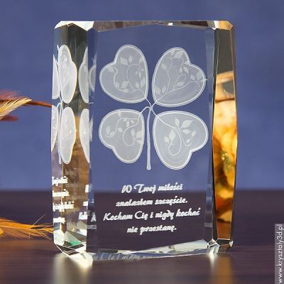 Koniczynka Miłości 3D ♥ personalizowany kryształ 3D średnia • GRAWER 3D