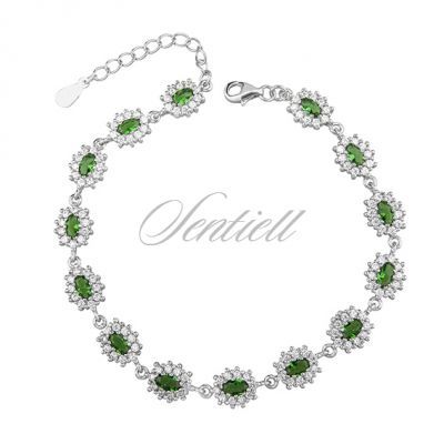 Srebrna modna bransoletka pr.925 Cyrkonia szmaragdowa - karmazycja - Szmaragdowa