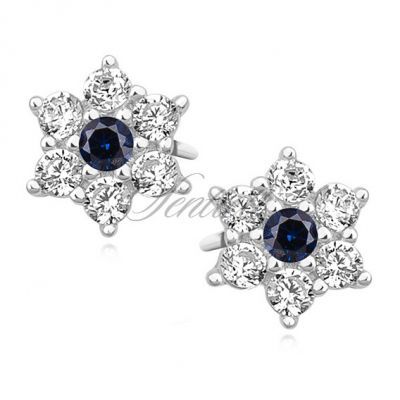 Srebrne kolczyki pr. 925 kwiatki z szafirową cyrkonią - Szafirowa