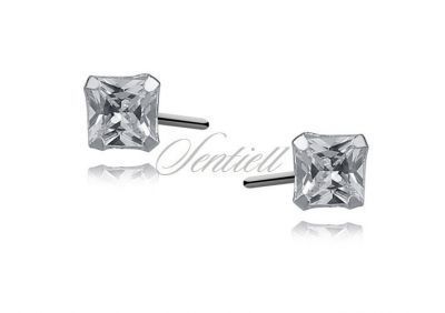 Srebrne kolczyki pr.925 cyrkonia biała 4 x 4mm kwadratowe - 4 mm x 4 mm