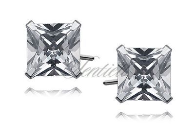 Srebrne kolczyki pr.925 cyrkonia biała 7 x 7mm kwadratowe - 7 mm x 7 mm