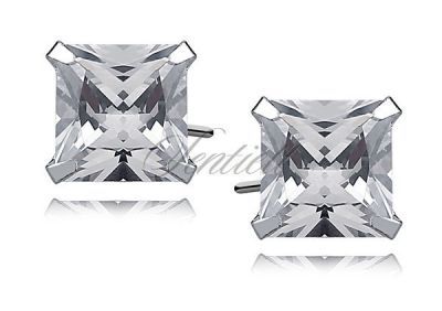 Srebrne kolczyki pr.925 cyrkonia biała 8 x 8mm kwadratowe - 8 mm x 8 mm