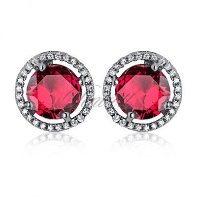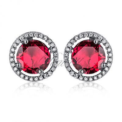 Srebrne kolczyki pr925 Cyrkonia okragła - rubinowa - Rubinowa