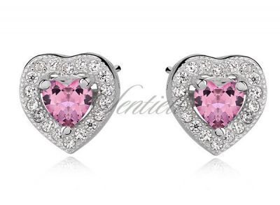 Srebrne kolczyki pr925 Cyrkonia różowa - serca - Różowa