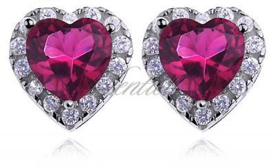 Srebrne kolczyki pr925 Cyrkonia rubinowa - serca - Rubinowa
