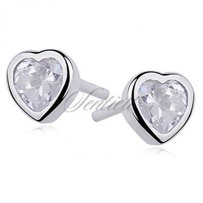Srebrne kolczyki serca pr.925 Cyrkonia biała serce - Biała