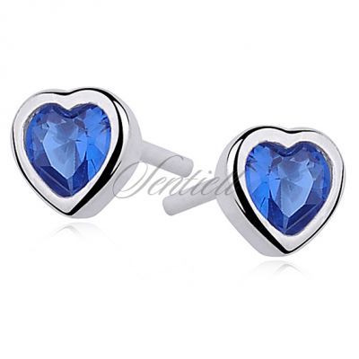 Srebrne kolczyki serca pr.925 Cyrkonia szafirowa serce - Szafirowa