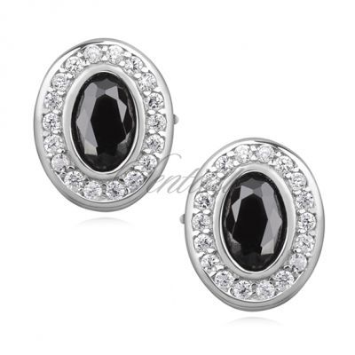 Srebrne pr.925 owalne kolczyki z czarną cyrkonią - Czarna
