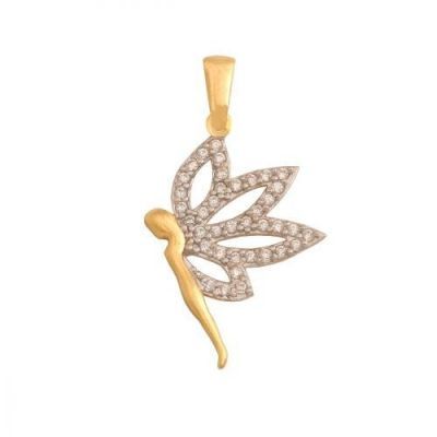 Przywieszka w kształcie elfika.Skrzydła wysadzane cyrkoniami, wersja cała żółta.