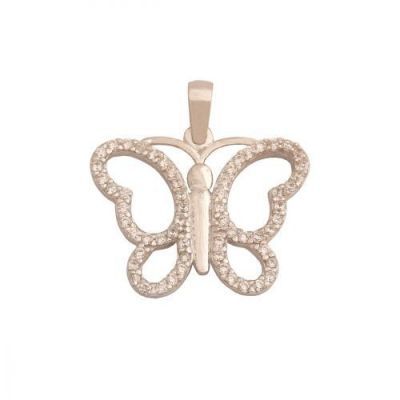 Przywieszka z białego złota w kształcie motyla z cyrkoniami.