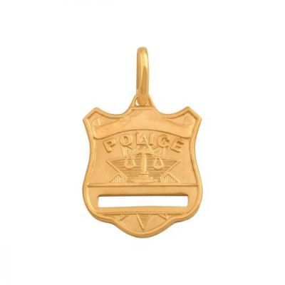 Ciekawa przywieszka w kształcie odznaki policyjnej.